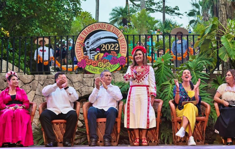 La gobernadora Lorena Cuéllar Cisneros asistió a la inauguración del -Festival de Tradiciones de Vida y Muerte-, organizado por el parque Xcaret Park, en Playa del Carmen, Quintana Roo, donde 280 tlaxcaltecas de 20 municipios mostrarán la cultura y tradiciones de Tlaxcala.
