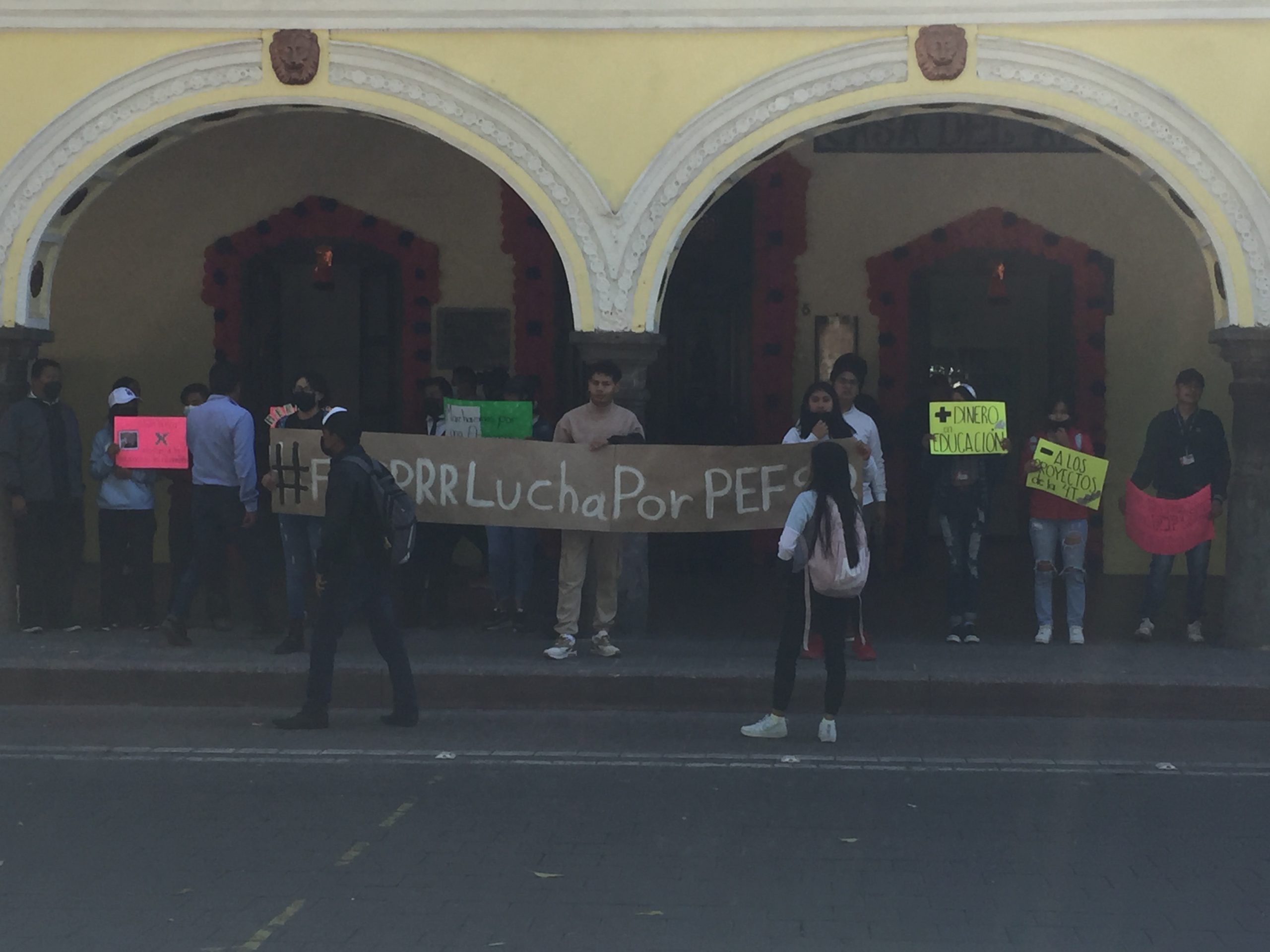 Estudiantes de la Federación Nacional de Estudiantes Revolucionarios “Rafael Ramirez” (FNERRR), se manifestaron frente a la presidencia municipal de Tlaxcala para demandar más presupuesto para la «Casa del Estudiante Tlahuicole.