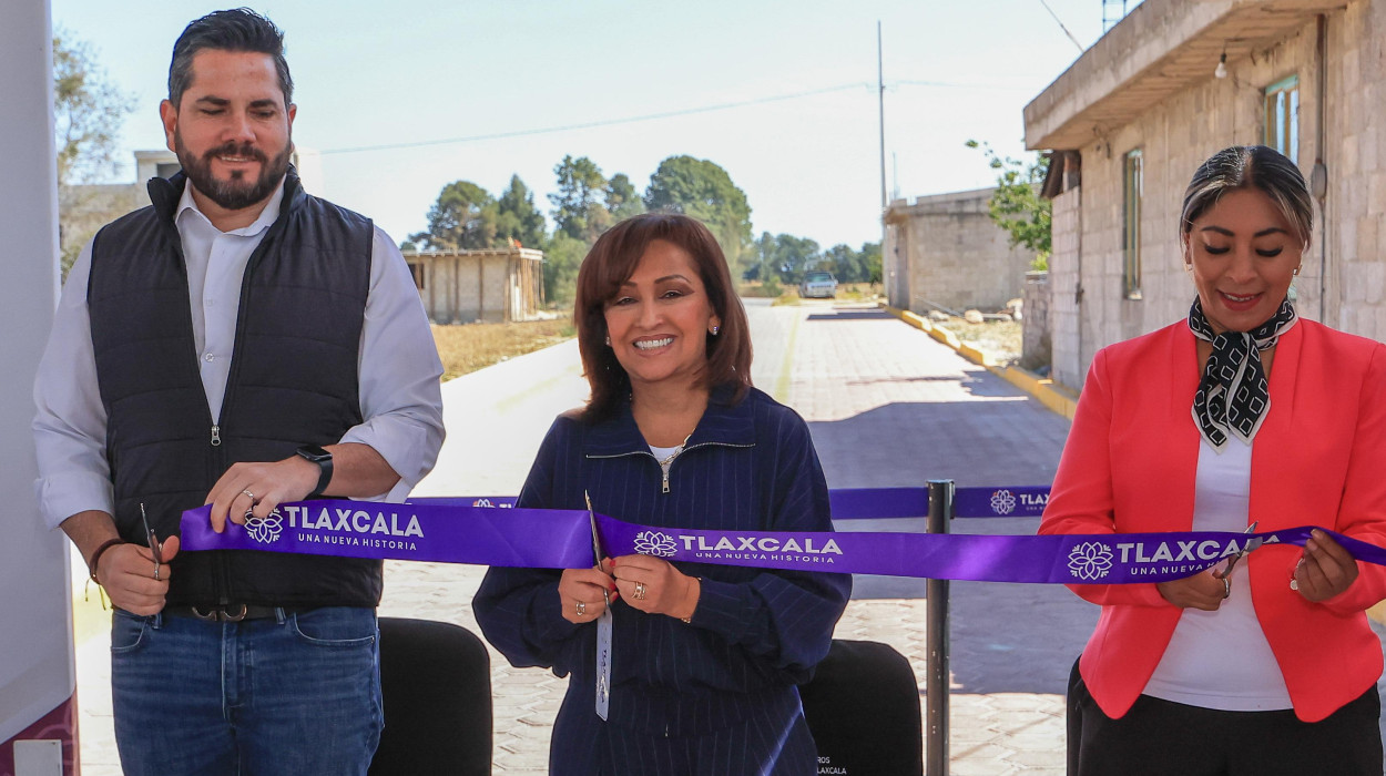 La gobernadora Lorena Cuéllar Cisneros entregó los trabajos de pavimento con adoquín, guarniciones y banquetas de la calle Niños Héroes en el municipio de San Francisco Tetlanohcan, obra que impulsa el desarrollo y bienestar de 11 mil 761 habitantes.