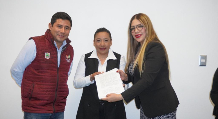 La Diputada local Mónica Sánchez Angulo, presidenta de la Comisión de Asuntos Municipales de la LXIV Legislatura del Congreso del Estado de Tlaxcala, encabezó la firma del convenio inicial de mediación entre las autoridades de los municipios de Cuaxomulco y Santa Cruz Tlaxcala, a fin de delimitar sus colindancias territoriales.