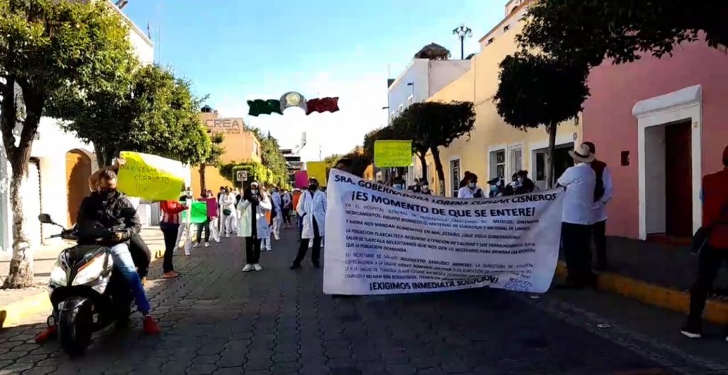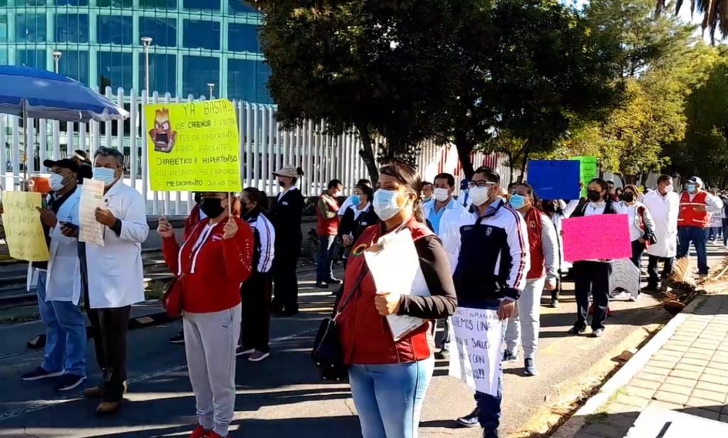 A gritos de “Fuera Zamudio “ , encabezados por Blanca Águila demandaron una solución a la falta de insumos y medicamentos, pues aseguraron que esa situación ya es insostenible en todas las unidades médicas del estado, lo que ademáspone en peligro lasalud de los tlaxcaltecas.