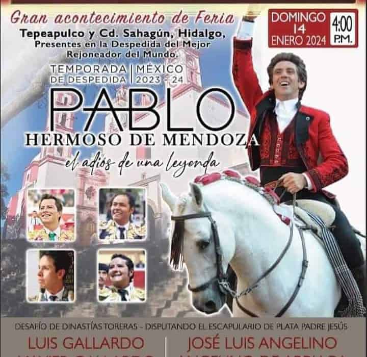 En este festejo se despide el legendario rejoneador navarro Pablo Hermoso y se conmemora el vigésimo aniversario de la inauguración de esta plaza Monumental donde también protagonizó el cartel el maestro Navarro Figura Histórica del Rejoneo Mundial a quien lo une un gran cariño con la afición de TEPEAPULCO, HIDALGO..