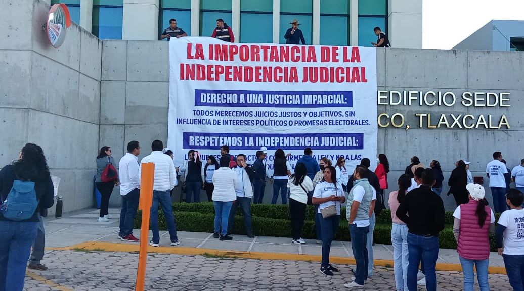 Lo anterior mediante un comunicado que dieron a conocer por lo que más tarde en las instalaciones del PJF de Tlaxcala marcharon decenas de trabajadores con pancartas y lonas en mano con mensajes “Todos somos Poder Judicial”, “Los jueces no hacemos las leyes, las aplicamos”, “No somos corruptos”, “Basta de ataques políticos al Poder Judicial”, y “clausuraron” la sede de este poder en el estado, con la colocación de cadenas y candados, en demanda de ser escuchados y que no se concrete una reforma que afecta a la base laboral y a la impartición de justicia.