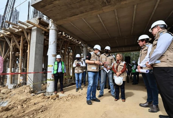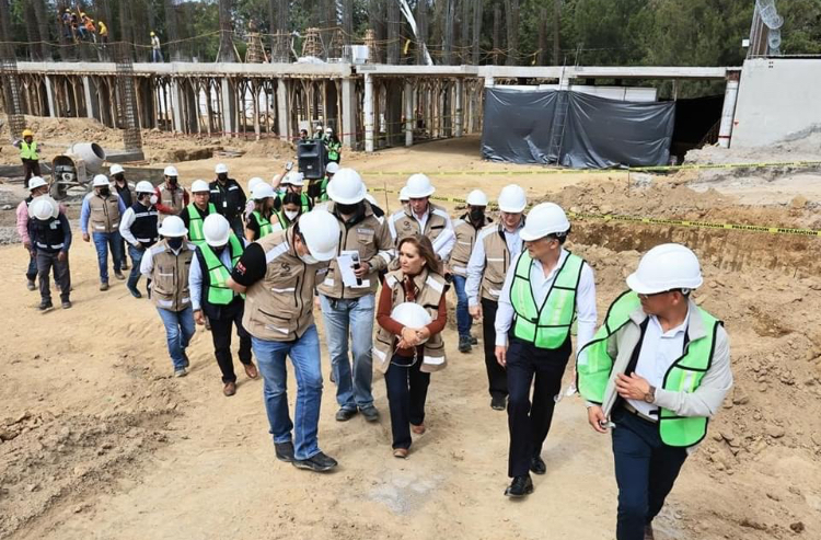 Durante el recorrido, el residente de la obra, Fernando Reynoso Beníte, explicó que los trabajos comprenden cinco edificios principales: monitoreo, de filtro, de servicios, el auditorio y casetas de seguridad, siendo el primero el que tiene un avance del 50% en su construcción.