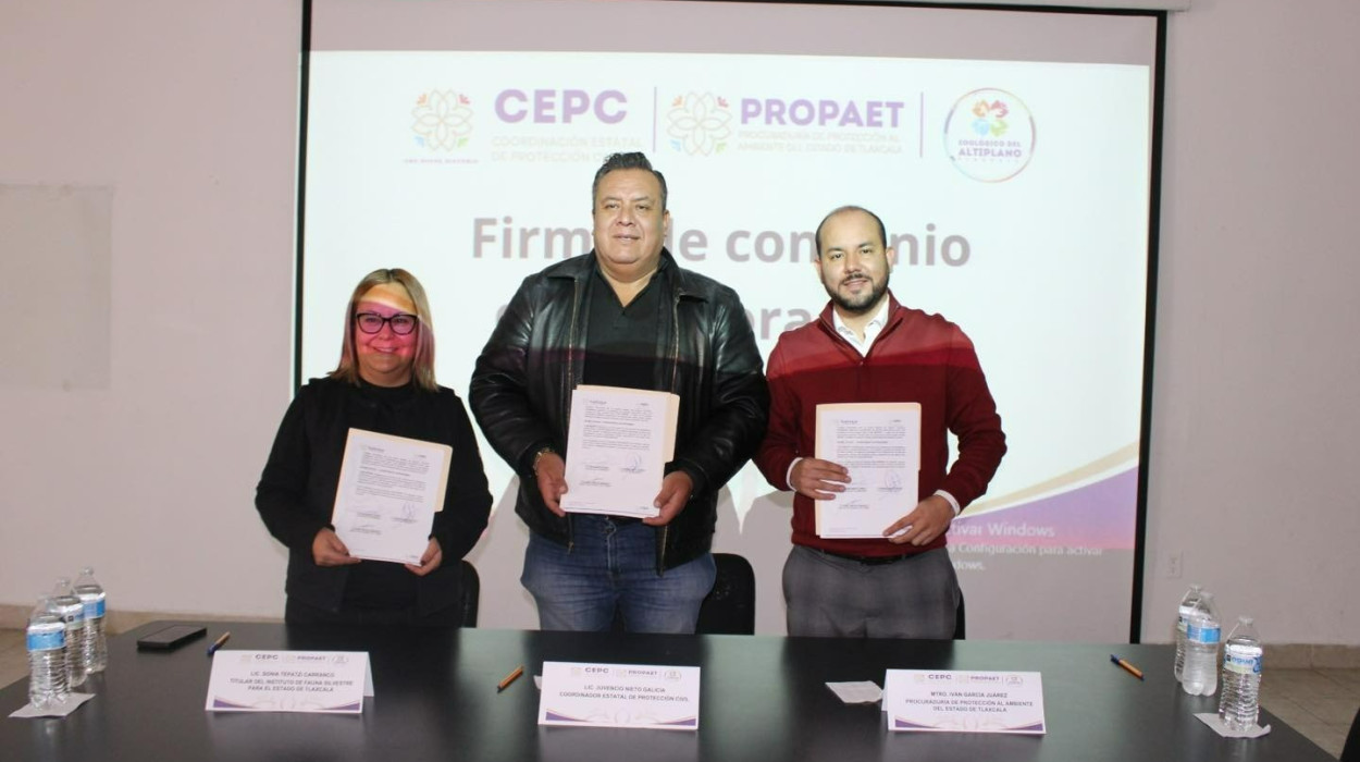 En un esfuerzo por fortalecer las capacidades de respuesta ante riesgos ambientales y situaciones que involucren fauna silvestre fuera de su hábitat, la Procuraduría de Protección al Ambiente del Estado de Tlaxcala (PROPAET), la Coordinación Estatal de Protección Civil (CEPC) y el Instituto de Fauna Silvestre (IFAST) firmaron un convenio de colaboración interinstitucional.